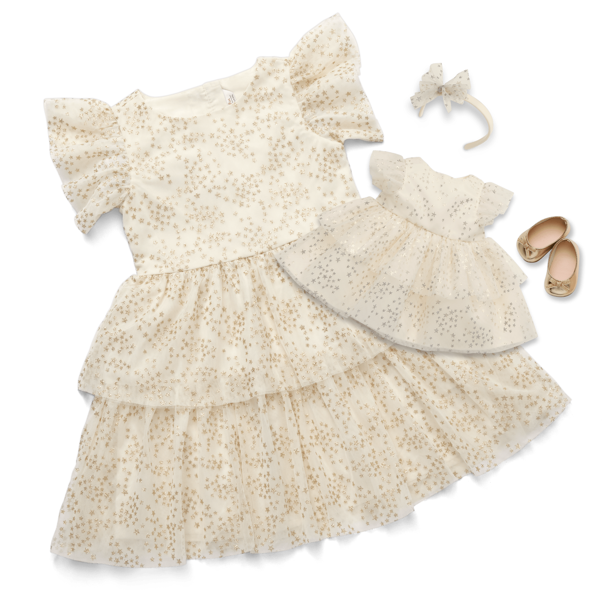 American Girl X Janie And Jack Sparkly Cream Celebration Dress For Little Girls & Bitty Baby Dolls