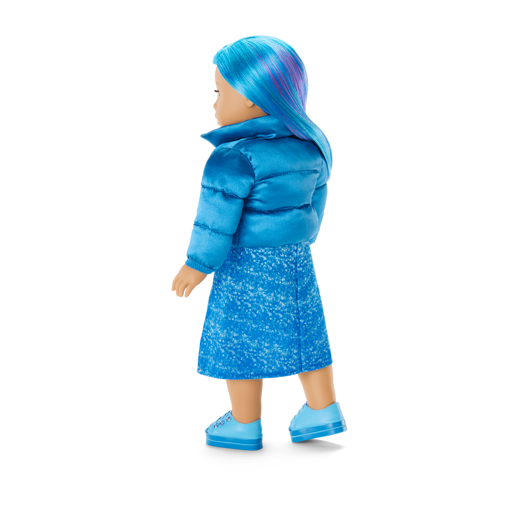 Shimmery-blue and cool as ice, this blue topaz birthstone-inspired ensemble is a dream for December birthdays and streetwear-chic fashion fans.